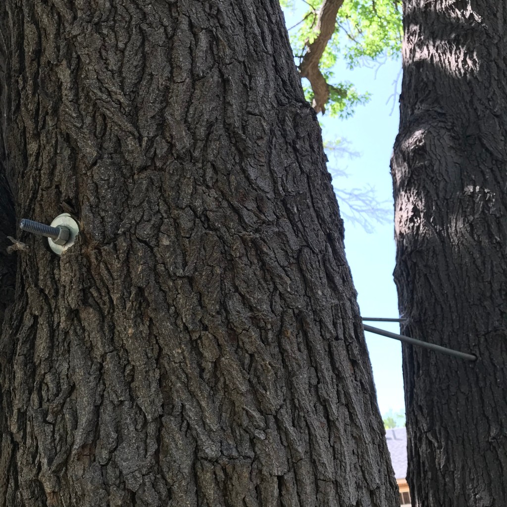 One recommendation that a certified arborist may make to mitigate risk of branches or codominant stems, may be to install a cable or a brace rod into the tree itself.